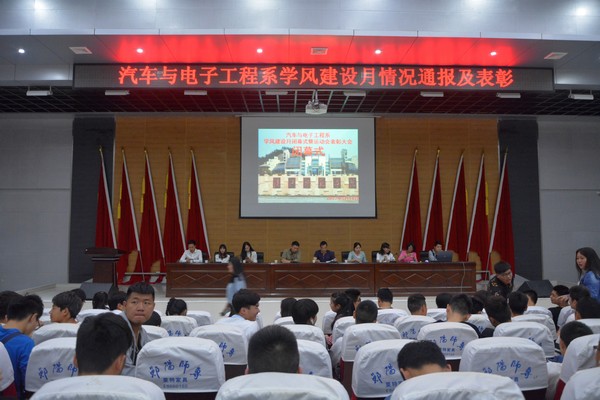 2017年5月14日晚上7点,汽电系在学术报告厅召开学风建设月的闭幕式和先进表彰大会。党总支书记石义杰和党总支副书记张玉龙出席,各班辅导员和班主任也参加了大会,会议由张玉龙主持。