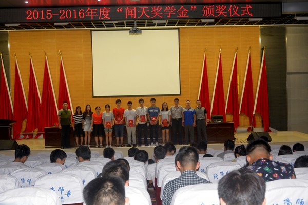 年6月16日,汽车与电子工程系在学术报告厅举行2015-2016年度“闻天奖学金”颁奖仪式。汽车与电子工程系主任何统洲、党总支书记石义杰、副主任史长城、党总支副书记张玉龙出席颁奖仪式。