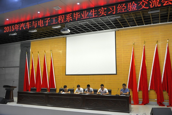 611是晚七点半,汽车与电子工程系在学术报告厅,召开了“实习经验交流会”。系领导班子、辅导员及全体员工参加了大会。