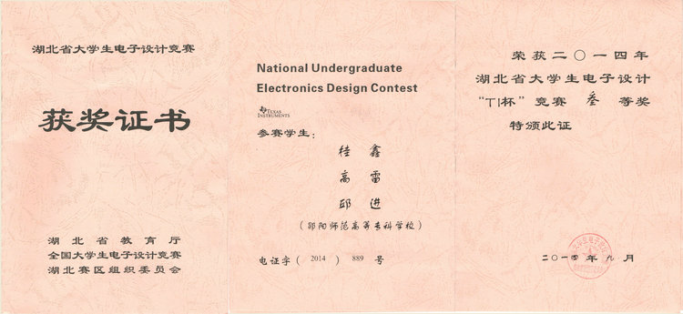 2014年12月30日下午,由全国老员工电子设计竞赛湖北赛区组委会主办的2014年湖北省老员工电子设计“TI杯”竞赛颁奖会在武汉理工大学会议中心301举行,湖北省教育厅高教处、武汉理工大学、湖北省老员工电子设计竞赛办公室、德州仪器中国模拟技术大学计划部负责人,湖北省老员工电子设计竞赛专家组成员,各参赛高校有关负责人、指导教师及获奖师生代表共400余人出席了大会。公司指导教师和员工代表李娥参加了此次大会。