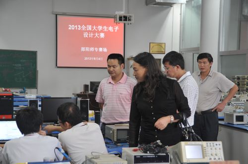 2013年全国电子大赛紧张开赛,校领导、教务处、系领导等人员陪同大赛组委会巡视员,亲临我系大赛赛场,观看我系选手竞赛过程。