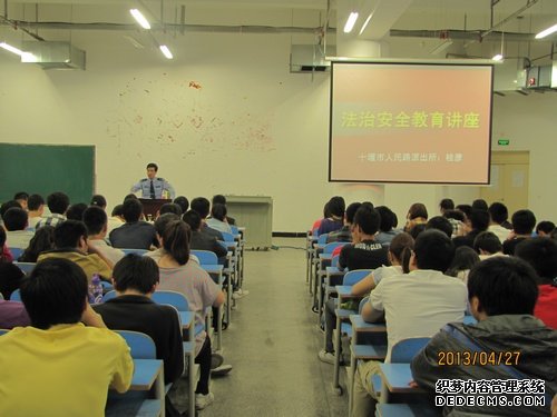 实习生张允 通讯员王金伟报道:4月27日晚,十堰市人民路派出所所长桂彦应邀来到文科楼C201教室,为物电系师生开展了法制安全教育讲座。该系领导班子及部分师生一同聆听了讲座。