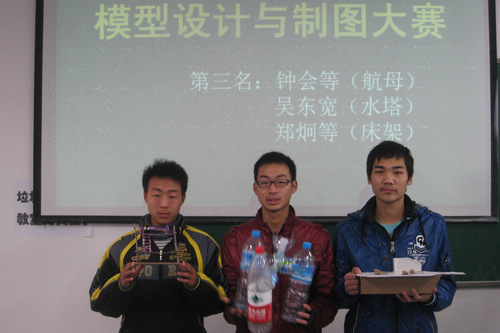 该系机电教研室周鹏和高瑞两位老师作为嘉宾出席了本次活动,魏芳波老师主持。在活动现场,教室前两排陈列有“友情相贯”“爱心小屋”“新型组合体”等近20个员工作品。比赛分为初期制作、作品陈述和设计展示、评选三个阶段,参赛者以个人或组合为单位,个人陈述和作品展示是本次比赛流程的亮点。最终,管斐同学设计的微型篮球架和喻毅设计的新一代导弹并列荣获第一名。