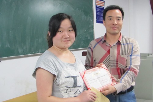 经过精彩比拼,杜莹同学获得此次比赛的一等奖,严梦蝶和洪统同学获得二等奖,李衡、陈平花和王绍宗同学获得三等奖,系党总支书记石义杰为比赛获奖选手颁奖。