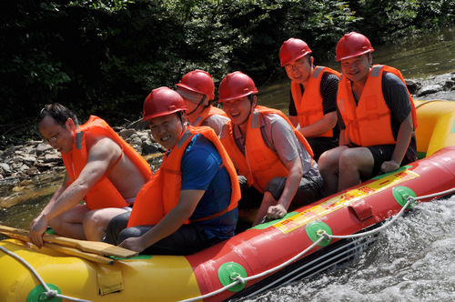 素质拓展项目由峡谷漂流和游览清末庄园两部分组成。在第一天的峡谷漂流中,教职工5人一组,乘坐漂流船,体验惊险刺激的峡谷漂流。第二天清末庄园之行,大家观赏了庄园周围秀丽的风景,并进入庄园进行参观,了解到庄园的历史由来和建筑特色。通过浏览,增强了大家保护地方古文化遗迹的决心。