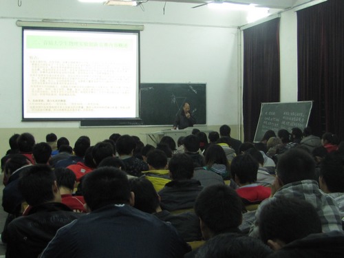 3月17日晚,西二教室座无虚席,物理与电子工程系高级实验师卜建平在这里给大家做了以“环境与安全”为主题的湖北省第二届物理实验竞赛讲座,此次讲座吸引了来自物电系各专业各年级共三百多人参与。