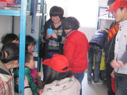 看到这批志愿者踏进校门,孩子们兴奋的奔跑者迎接过来,特校的老师们向志愿者介绍了特校员工的基本情况,并向前来的志愿者表示感谢。在老师的带领志愿者参观了员工的教室,在教室里,志愿者亲切的和孩子们交流着,询问他们的学习生活情况,有的还为他们辅导功课;随后志愿者们又参观了特校员工的宿舍,在宿舍,看到孩子们的生活用品摆放的整整齐齐,有条不紊,志愿者们向孩子们伸出了大拇指。