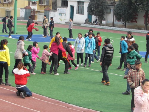 参观完毕,志愿和孩子们一起做起了游戏,多才多艺的志愿者为孩子们表演了节目,有的还教他们打篮球,和孩子们一起踢起了足球,大家的脸上都洋溢着欢乐的笑容。