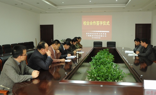 日,物理与电子工程系与十堰隆茂行贸易有限公司在图书馆会议室举行了校企合作签字仪式。双方将共建郧阳师专国家级电工电子与自动化技术实训基地“汽车检测与维修中心”。