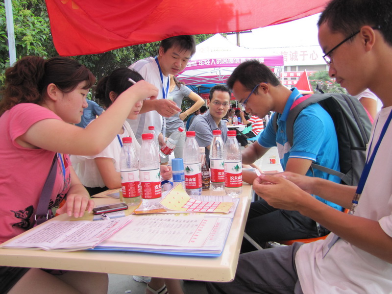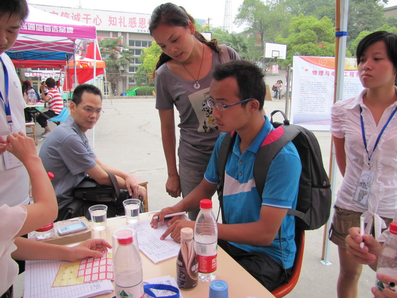 在9月3号早上6点开始,我系老师们和志愿者们在接待点各就各位,热情接待陆续到来的新生们。每位新生到来,接待点都会派出志愿者热情地帮新生拿行李,带着他们按照流转表完成各个报道注册需要完成的事项。原本繁琐的注册事项在新生与志愿者谈笑间便完成得井井有条,丝毫不差。我系老师关心11级学子的家庭情况,关注特困学子,当天组织他们办理“绿色通道”并通知相关事宜,鼓励他们摆脱家庭困境,努力学好专业知识,培养自己的工作能力,把自己培养成社会需要的人才。直到4日晚上9点,在志愿者们的共同努力下,两天的迎新工作圆满完成。