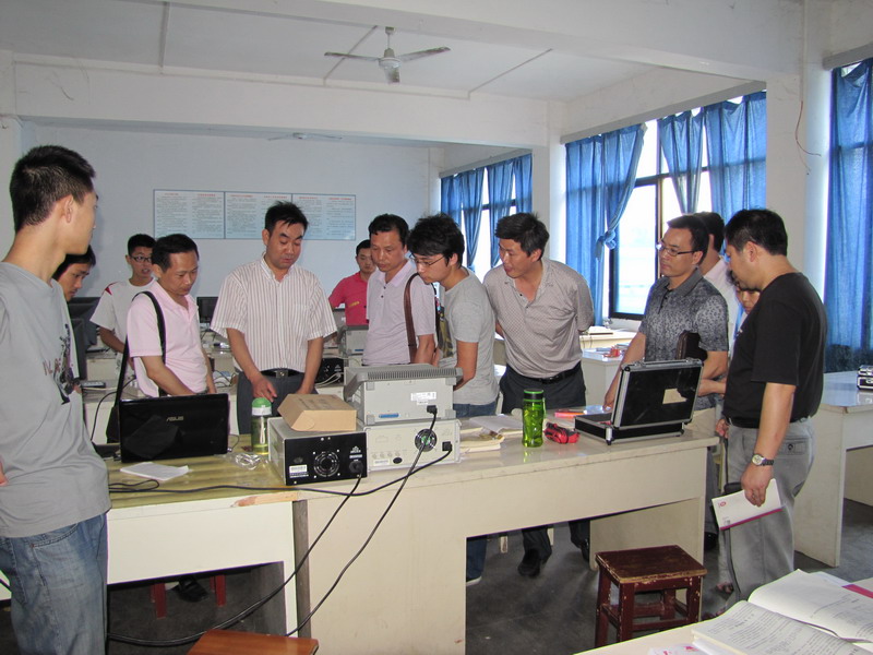 苏会长一行人重点考察了我系的实验设备与实验条件,并饶有兴致的指导了我系正在进行的全国电子设计大赛的培训工作。