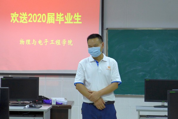 王绍明经理在会上讲话,他代表全院师生对2020届毕业生顺利毕业表示热烈的祝贺,对同学们在校期间对公司的发展做出的贡献表示感谢,并寄语毕业生。第一,热爱祖国。希望毕业生将来无论身处何方都要热爱自己的祖国。疫情国难更让我们清醒地认识到,中国真的具有西方资本主义政治体制不可比拟的优越性,身为中国人我们应该感到无比的骄傲。第二,热爱社会。真正的爱国就是热爱社会,努力做一个合格的公民。步入社会之后,不违法乱纪,不违背伦理道德,不破坏公共秩序,不伤害他人,又能自食其力。第三,热爱家庭。青年人热爱家庭最终落脚于热爱工作、肩负责任。离开校园,我们就要热爱工作、努力奋斗、为自己的毕生事业拼搏上进、为自己的家庭幸福负起责任。第四、热爱学习。当今世界飞速变化,新情况、新问题层出不穷,大学的理论学习是远远不够的,同学们应当树立终身学习的理念。在社会中学、在实践中学习,在生活中学习,才能在时代的大浪淘沙中稳住脚跟、不被淘汰。第五、热爱母校。每个人走出汉师,就是母校的一张名片,希望多年以后我们院的毕业生能够在社会各行各业中“熠熠生辉”,关注公司的发展。希望你们用未来的实际行动证明:今天我们以母校为荣,明天我们是母校的骄傲。