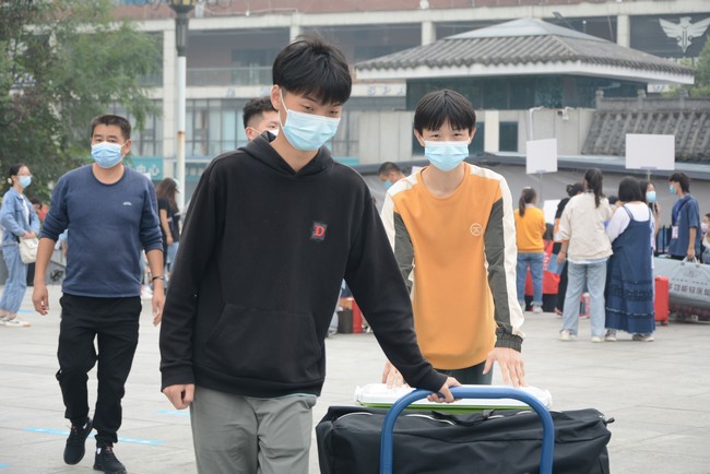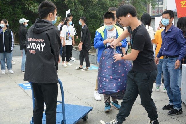 迎新第一天,在党总支副书记张玉龙、学工办主任杨帆和团委书记李国军老师的指导下,迎新工作人员很快熟悉了流程,他们有条不紊地带领新生完成报到流程。2019级全员组成迎新志愿者队,为新生提供“一对一”的志愿服务,帮助新生办理手续、搬运行李直到寝室,迎新工作有序顺利进行。