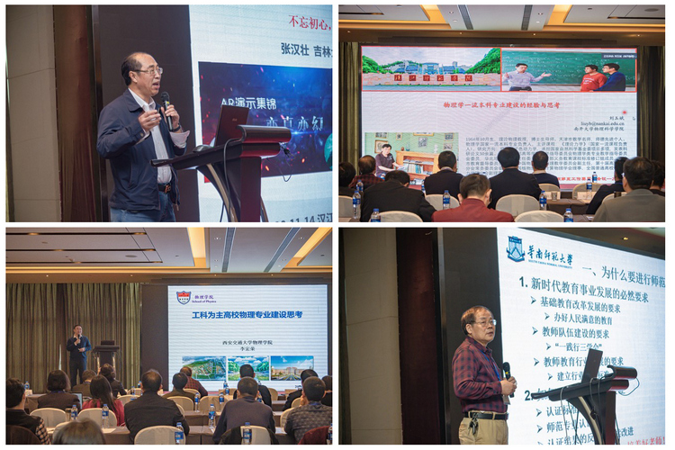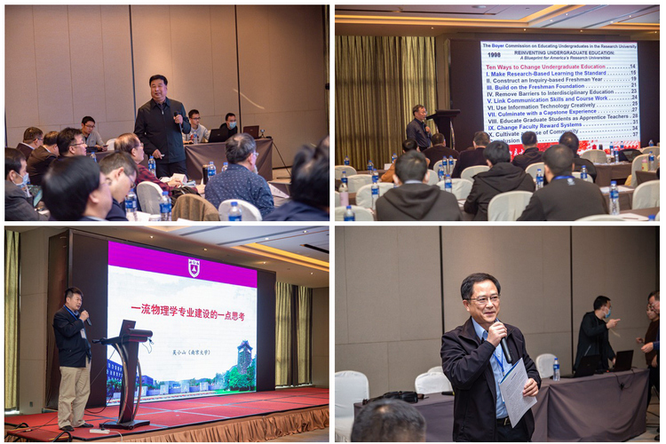 本次会议中,教育部物理学类专业教学指导委员会秘书长、汕头大学陈敏教授做“一流课程中课程思政建设的一些思考”,山西大学原董事长贾锁堂教授做“基于Rydberg原子的微波电场测量”,北京大学刘玉鑫教授做“多措施并举,培养优秀创新型人才”,南京大学吴小山教授做“物理学一流本科专业建设”,吉林大学张汉壮教授做“深化课程建设,践行育人使命”,南开大学刘玉斌教授做“物理学一流本科专业建设的经验与思考”,西安交通大学李宏荣教授做“工科为主高校物理专业建设探索”,华南师范大学唐志列教授做“物理学师范专业认证工作经验与思考”,四川大学龙炳蔚教授做了“四川大学实施物理拔尖计划的总结及举措”,高等教育出版社忻蓓编辑做了“宇宙简史课程建设的启示与思考”等10个主题报告。与会的专家和代表们还围绕物理学一流专业与一流课程建设、课程教学与信息技术的融合、物理类课程的课程思政等方面进行了研讨和深入交流。