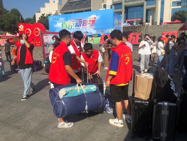 头顶烈日、手拿行李,一趟又一趟不知疲倦地为新生服务的球友会志愿者们是迎新现场最靓丽的风景线。本次迎新活动,球友会负责火车站北广场的志愿服务,同时在北京路大门、公司迎新点共安排了近60名志愿者服务队伍,他们努力践行志愿精神,以饱满的热情迎接着每一位汉师学子,阳光下,充满汗水的笑脸显得更加耀眼美丽!迎新结束后,有志愿者介绍到,电气2101班名叫熊邹贻的同学,在志愿者们的帮助下完成报到后,整个下午都在自愿服务其他同学,据不完全统计,还有超过五名未透漏姓名的新生同样是在报道后积极参加公司迎新工作,不知不觉间,默默无闻、志愿奉献的志愿精神正在迎新现场这群零零后孩子们身上传承延续着!