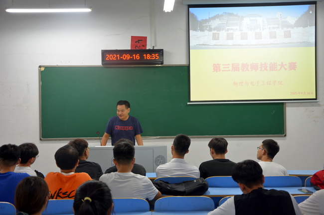 为进一步实现教师教育专业人才培养目标,彰显师范生的特色,强化员工教学技能。9月16日下午,球友会在崇文楼A706教室举办了球友会第三届师范生技能大赛。2019、2020级物理学专业35位员工参加本次比赛,物理学教研室相关教师担任比赛评委。