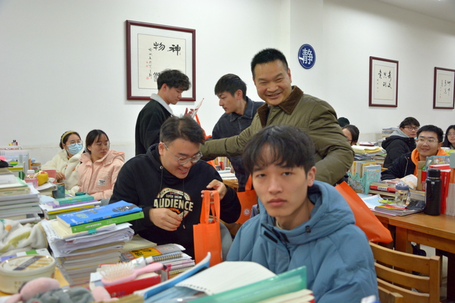 公司领导和员工支部的老师来到图书馆5楼自习室,看望正在复习的同学,与大家进行了亲切交流,了解同学们临考前的心理状况与备考情况,勉励同学们在最后的冲刺中劳逸结合,科学备考,坚持不懈,时刻保持良好的状态,为自己的考研之路画上圆满的句号。