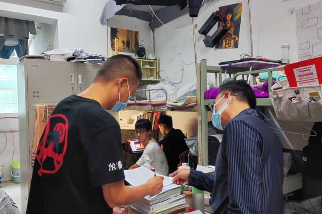 91日是新学期开学第一天,因为疫情防控要求,全体同学在宿舍在线观看开学第一课《辉煌奋进路 中国这十年》及开展线上教学,公司领导带领各教研室负责人、学工办教师深入宿舍,开展教学检查,了解同学们学习生活情况和防疫工作。
