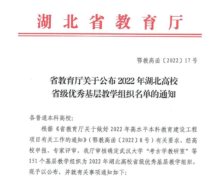 年湖北高校省级优秀基层教学组织名单的通知》(鄂教高函〔