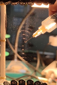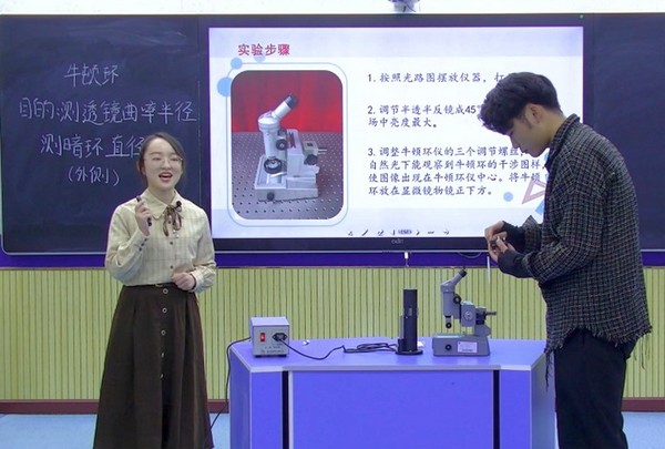 一等奖获得者田春阳、王志豪参加物理实验讲课复赛 二等奖:液滴的超声波声控悬浮