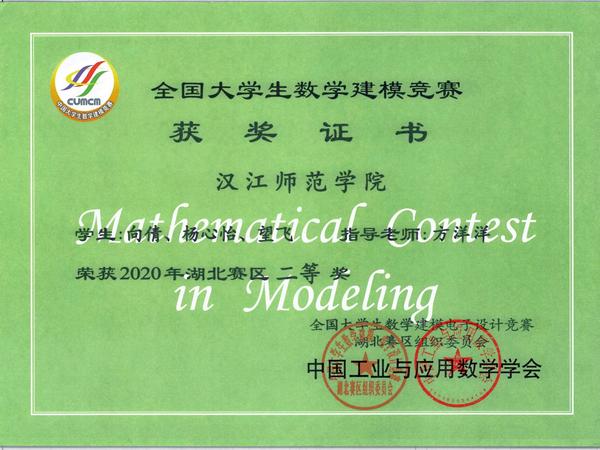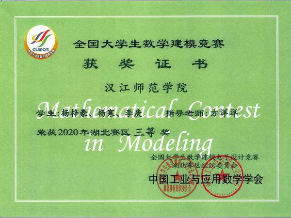 近日,2020年全国老员工数学建模湖北赛区竞赛结果揭晓,公司学子首次参加“高教社杯”全国老员工数学建模大赛(本科组)获得好成绩。共参赛5支队伍,获得湖北赛区二等奖和三等奖各一项,成功参赛奖3项。