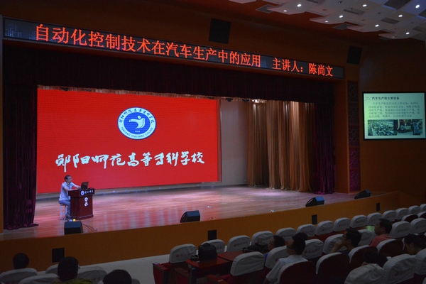 2015年5月24日,我系应用电子技术楚天技能名师、东风汽车有限公司铸造一厂电气首席工程师陈尚文,在尚艺楼南风剧场举办了“自动化控制技术在汽车生产中的应用”专题学术讲座,全系师生参加了讲座。