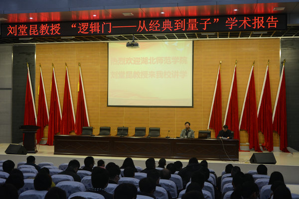 (通讯员史长城、石义杰报道)2014年11月28日上午,湖北师范公司物理与电子科学公司刘堂昆教授学术讲座在公司学术报告厅举行,公司物理与电子工程系和生物化学与环境工程系全体师生聆听了刘教授主题为“逻辑门——从经典到量子”的学术报告,讲座由陈俊教授主持。