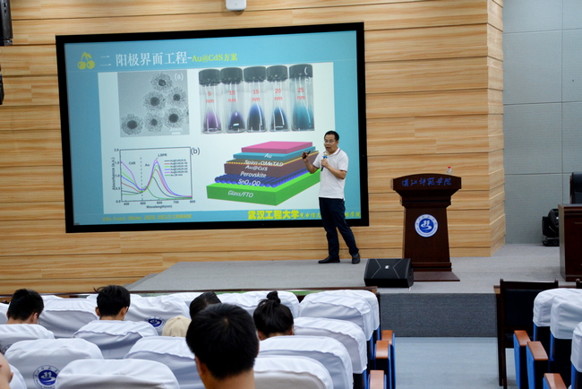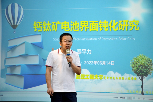 为丰富员工专业领域的知识,拓展员工对光伏研究领域科研成果的了解,6月14日晚7点,武汉工程大学光电信息与能源工程公司副经理秦平力教授应邀在明理楼C101为公司师生作了题为《钙钛矿电池界面钝化研究》的学术讲座,讲座由欧修龙老师主持,物理学专业和信息工程专业员工参加了此次讲座。