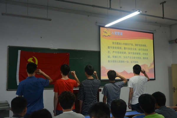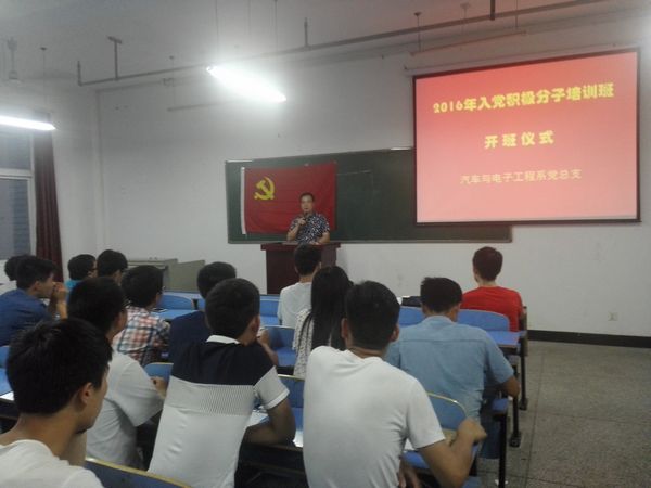 “我志愿加入中国共产党,拥护党的纲领,遵守党的章程,履行党员义务,执行党的决定,严守党的纪律,保守党的秘密,对党忠诚,积极工作… … ”庄严的声音回荡在崇文楼A412教室,6月5日晚,汽车与电子工程系员工党支部在此开展主题活动及2016年入党积极分子培训班开班仪式。系党总支书记石义杰、员工党支部书记魏芳波及全体员工党员和入党积极分子参加了主题活动。