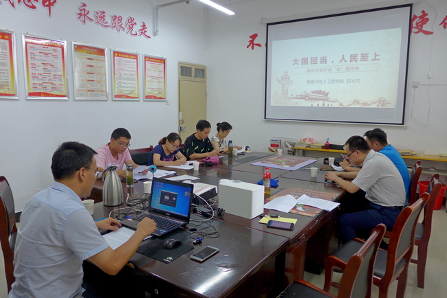 7月6日至7月7日,教工党支部、员工党支部利用现场+视频会议的形式开展主题党日活动,认真学习习近平讲话精神和两会精神,突出战“疫”主题,讲好身边故事,引领带动全体党员务实担当、履职尽责,抓好常态化疫情防控,做好返校复学各项工作。党总支书记石义杰、教工党支部书记欧修龙、支部委员杨帆还分别以《大国担当、人民至上》《抗“疫”彰显制度优势》《坚持人民至上,凝聚中国力量》为题,为全体党员讲专题微党课,党课中运用权威数据、鲜活事例,讲述了党中央的集中统一领导、我国在疫情防控中展现的制度优势,展示了各级党组织和广大党员、干部牢记人民利益高于一切,在疫情防控斗争中践行初心使命的生动事迹,展现了中国助力全球抗疫、推动构建人类命运共同体的责任担当。