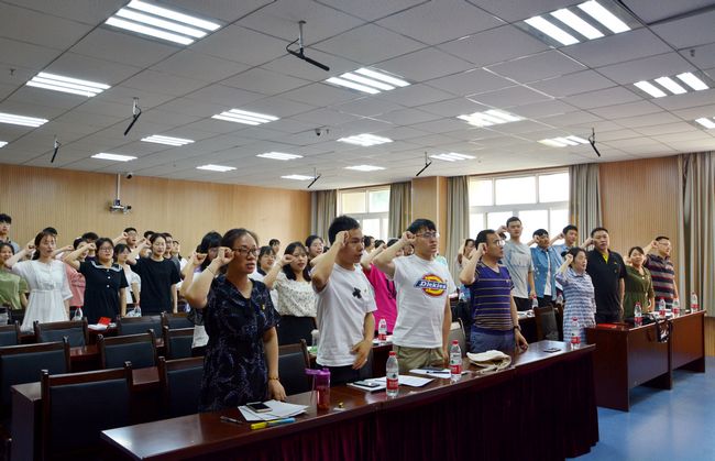 活动开始,全体党员在石义杰书记的带领下,面向党旗,重温入党誓词。