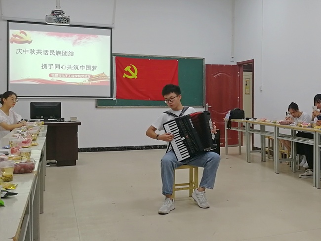 茶话会上,师生围坐一圈,互致问候。2021级来自西藏族同学为在场师生献上《1376心想事成》《欢迎你的到来》《故乡保吉》,独具少数民族特色的节目,员工党员也表演了独唱、小合唱、手风琴演奏等节目。大家用昂扬的舞姿,跳出心中的幸福;用动听的歌声,唱出心中的豪迈。欢声笑语中共叙师生情谊,载歌载舞中共促文化交融,整个会场里荡漾着和谐、团结、欢快的节日气氛。