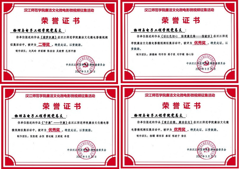 10月7日上午,校纪委在一号会议室召开“2022年廉洁文化微电影微视频征集活动”总结表彰会。公司党总支选送的4个作品,其中作品《捕梦织廉》荣获二等奖,作品《话红色初心,扬清廉先锋—杨献珍》、作品《“手廉”—守廉》、作品《清正在德,廉洁在志》均荣获优秀奖。《捕梦织廉》还被公司推荐参加十堰市“青”廉杯廉洁文化微电影、微视频大赛。