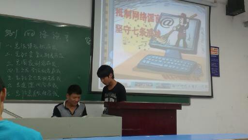 7点50分,先以一则网络谣言的小品登场,拉开了团会的序幕。团会魏老师主讲,以PPT、视频的方式列举并分析了谣言的十大盘点,与同学们共同讨论出网络谣言的危害。在讨论问题的环节中,同学们积极踊跃的发言,大家列举了身边的所见所闻,更好的让我们详细的了解网络谣言的利弊。最后以手牵手的方式跟随班级团支书王卉同学宣誓了七条底线,同学们声音洪亮,意志坚定,这样的气势让同学们更加的坚定了这些底线,脸上绽放的笑容,印象深刻,对待谣言敢于说“不”,“不造谣、不信谣、不传谣”。