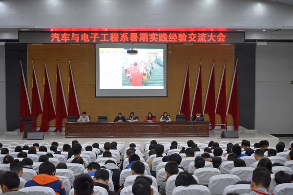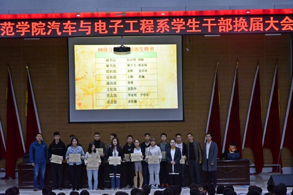 2018年10月21日晚七点,汽车与电子工程系员工干部换届大会和暑期社会实践交流大会在学术报告厅举行。出席此次会议有系党总支书记石义杰老师、系党总支副书记张玉龙老师、分团委书记李国军老师以及辅导员魏东老师。汽车与电子工程系全体员工及员工干部参加会议。