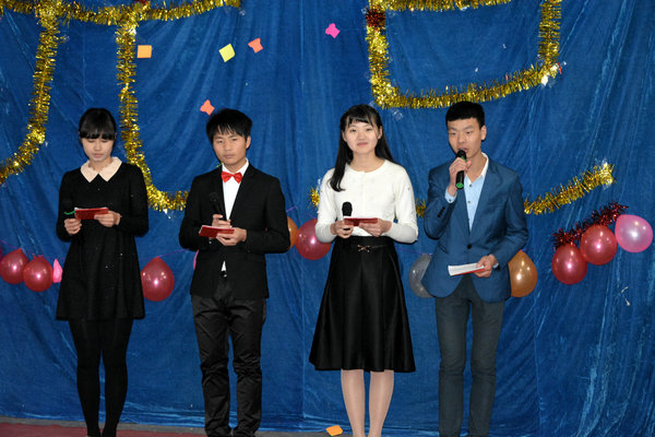 在元旦来临之际,为了丰富同学们的课余文化生活,搭建师生互动交流的平台。物理与电子工程系于2014年12月28日在崇文楼c201举行了元旦联欢晚会。莅临晚会的领导有物电系主任何统洲、党支部书记石义杰、副书记张玉龙、副主任史长城、物电系分团委书记魏芳波、辅导员胡志娟、柯娟、吴秋菊、李国军等。