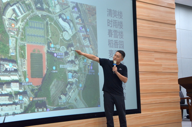 张玉龙副书记为新生介绍了公司的主要区域,通过一张公司的全景图生动地向新生们讲解了教学楼、食堂、寝室楼的具体位置,使新生快速地了解和熟悉公司的基本构造。