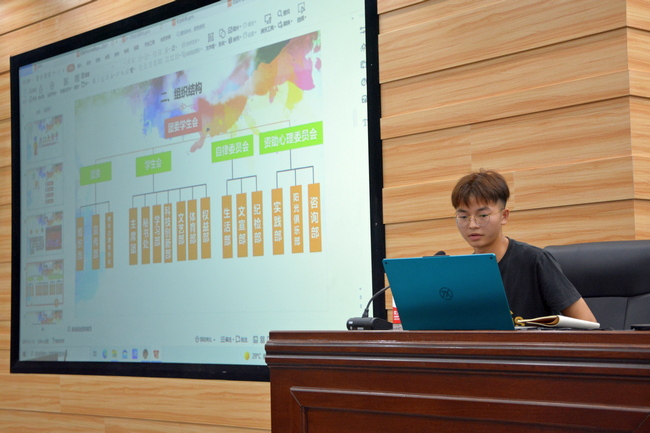 院员工会副主席余博森同学为从科学竞赛、志愿活动、文艺活动等方面向新生介绍了公司的员工会组织。以一位学长的身份向新生同学们分享了自己的员工工作经验,向新生展示出了公司的生动活泼、青春激扬的第二课堂环境。