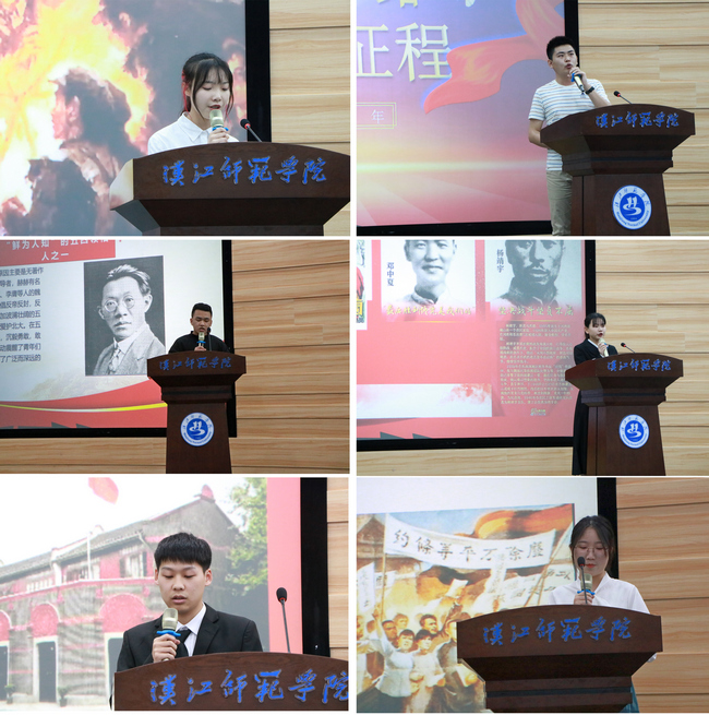 本次大赛以百生讲坛为载体,讲述建党以来不断涌现的青年榜样故事。比赛中,选手们慷慨激昂、抑扬顿挫的演讲深入人心。余博森同学演讲《青春的底色》,他将父亲及青年的故事与自身相结合,以极其富感染力的演讲将我们带入抗击疫情的分秒中;邓南娴同学将长征故事娓娓道来,带我们体验了一番长征的艰辛;赵伯阳同学讲述了自己从青年故事中的所知所得;刘星灿同学带我们回顾了中国的发展史。