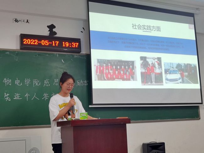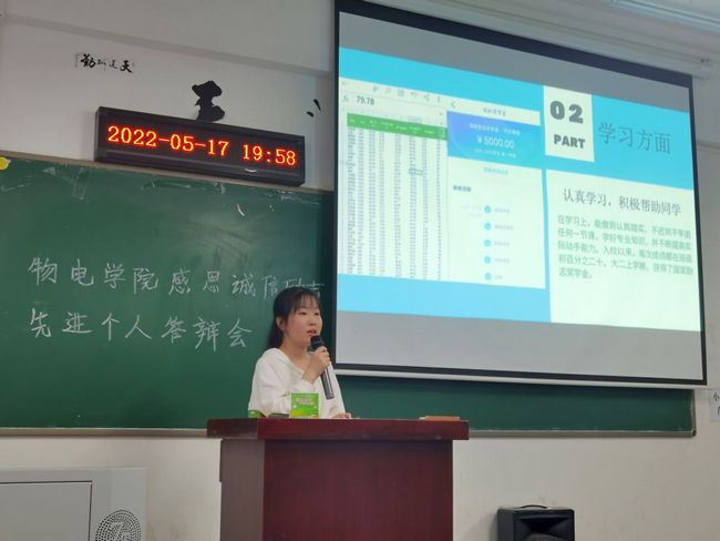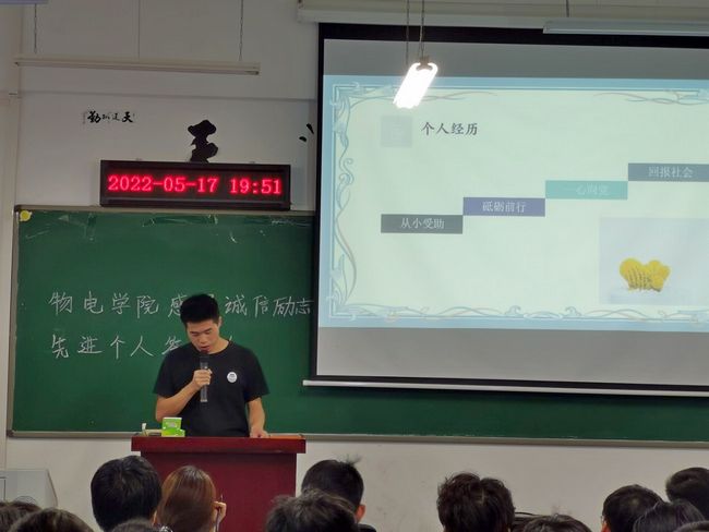 5月17日晚,由球友会资助心理委员会举办的“励志自强,诚信感恩”感恩诚信励志教育先进个人答辩会在崇文楼A705隆重举行。学工办主任李国军老师,员工会指导老师李朦老师、专任教师方洋洋老师出席此次活动,20级、21级全体受资助员工参加。此次答辩会由资助心理委员会宋文杰主持。