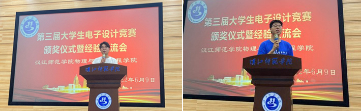 会上,竞赛一等奖获得者物理学1901班曹浩楠同学交流经验,他认为注重理论知识与实际操作能力相结合极为重要,建议拿到参赛题目时要根据自己情况选择,并按照题目要求进行分解,选择最优化的模块电路和器件,团队合理分工,发挥各自特长,团结协作动手逐一调试实现。优秀员工代表电气1801班杨寒在发言中谈到专业竞赛奖项在考研中占据了很大的优势。同时表示参赛作品不仅仅局限于比赛,也可以投入其他各种创新项目中,希望同学们能积极参加与专业相关的竞赛,也是为考研等目标打下良好的基础。
