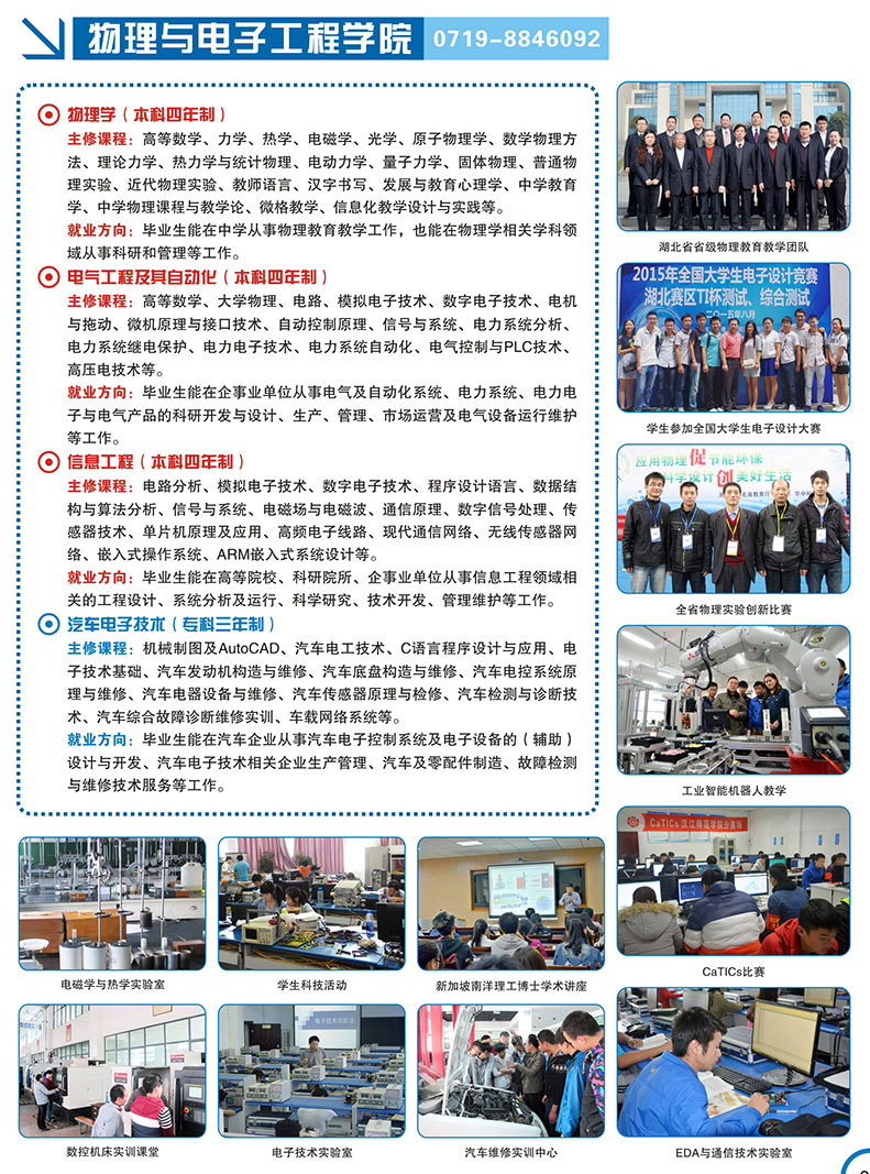 公司拥有一支专兼结合、高素质的“双师型”教学团队。其中教授6人,博士3人,有湖北省突出贡献中青年专家、湖北省新世纪高层次人才工程第二层次人选、湖北省重点学科带头1人,湖北省特聘专家、首批海外归国人员“百人计划”人选、湖北省新世纪高层次人才工程第一层次人选1人,十堰市专业技术拔尖人才3人,设有楚天技能名师教学岗,物理教育专业教学团队2010年被评为省级教学团队。