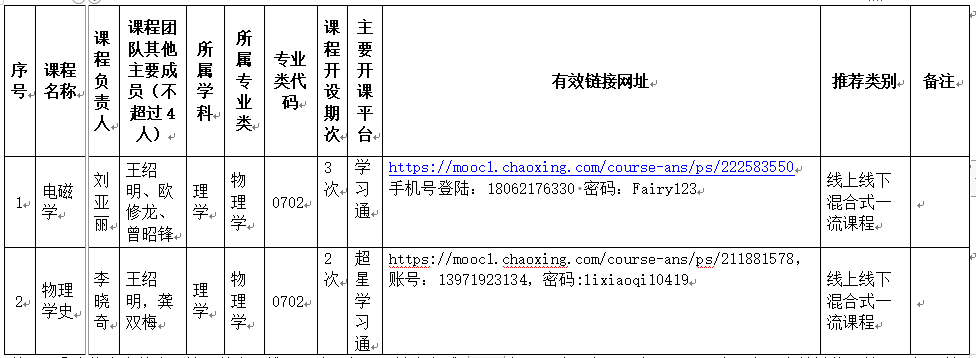经课程负责人申请、球友会审核《电磁学》、《物理学史》省级一流本科课程申报书及支撑材料,《电磁学》、《物理学史》课程通过资格审查,符合参评条件要求,同意推荐《电磁学》、《物理学史》课程申报省级一流本科课程。课程具体信息如下: