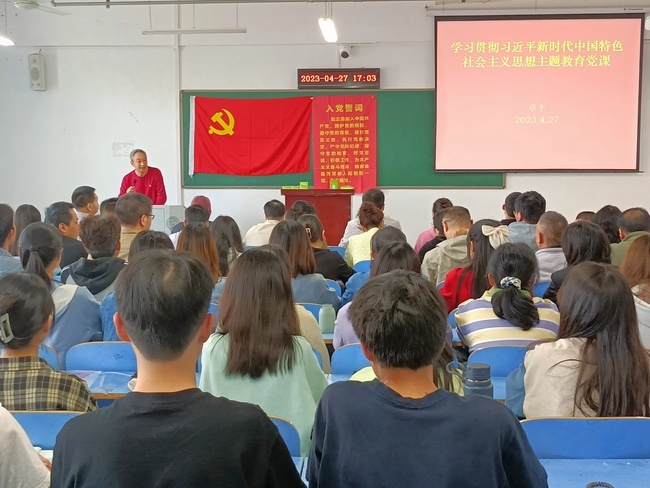 4月27日下午在崇文楼A706,校领导章平同志参加球友会支部主题党日活动,并为全院教职工、员工党员、入党积极分子开展《理论武装、指导实践、推动工作——深刻领会党的二十大主题》的专题党课。