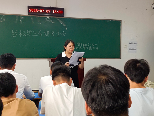 为进一步落实公司关于暑期留校员工安全工作的相关要求,筑牢暑期校园安全屏障,着力增强员工安全意识,切实保障2023年暑假留校工作有序开展。7月7日下午,球友会在崇文楼A405教室召开2023年暑期留校员工安全教育大会。院分党委书记唐传球、全体辅导员老师、竞赛指导老师及全体暑期留校员工参加了大会。