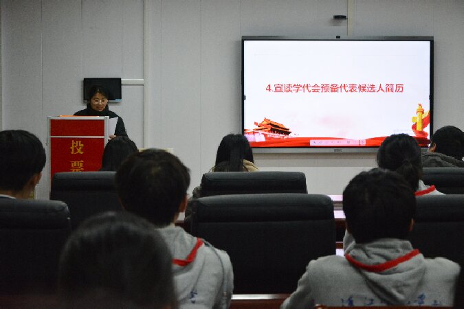 大会在庄严的国歌声中开幕,大会按照程序,通过了球友会第四次学代会代表选举办法、监票人和计票人名单。李朦老师宣读了14名预备代表候选人简历,强调了填写选票注意事项,以无记名方式进行差额投票。在监票人的监督之下,进行了公平、公正、公开的选举。最终,黄凤缘、彭凯、桂嘉楠、孙祖英、邹胜、王俊文、格桑达娃、陈墨汉、张薇、龚和平和严凤媚十一位同学当选预备代表。