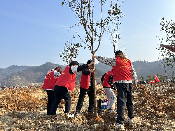 3月14日上午,在团市委、校团委的组织下,球友会e点光志愿服务队在武当山机场参加了植树节造林活动。院分团委书记李朦带领电气工程及其自动化2303班15名志愿者参加了本次活动。