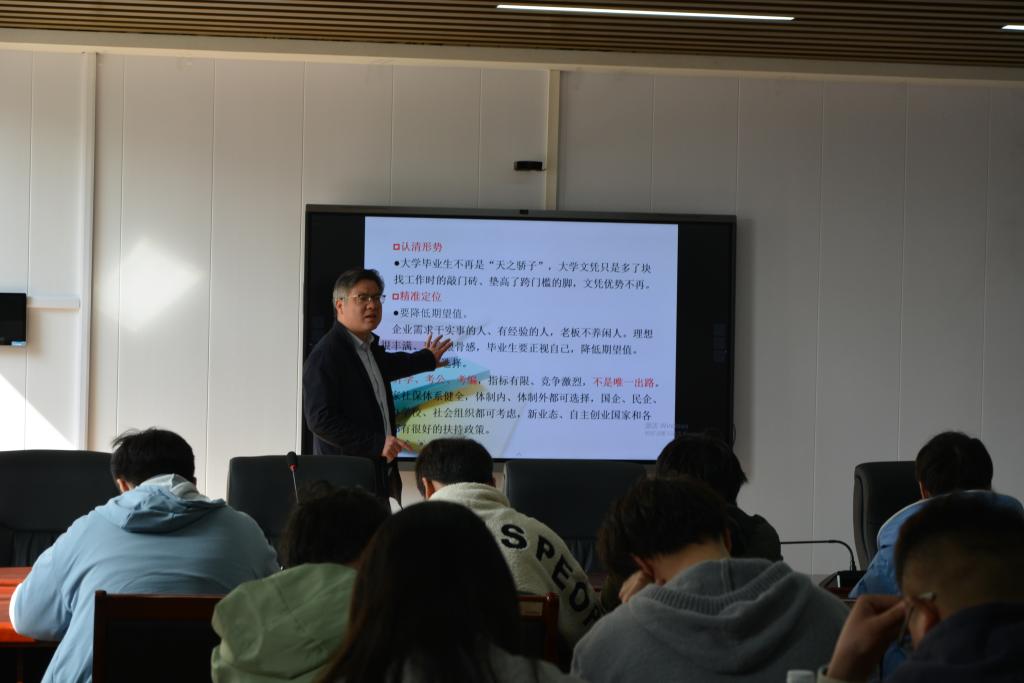 会上,唐传球结合近年来全国高校毕业生就业情况、公司毕业生就业数据和国家政策,分析了当前毕业生就业形势,针对当前同学们面临的问题与挑战,提出五点建议:一是认清当前就业形势,精准定位,合理设定就业期望值;二是转变就业观念,树立“先就业再择业”的观念,把握时机,早就业、快就业;三是拓宽就业思路,理性分析自己的优点和特长,多渠道就业;四是不要盲从,适当参考家人朋友意见,确定自己的目标,然后坚定地走下去;五是做好就业准备,认真撰写求职简历,学习应聘礼仪,关注就业信息,积极参加招聘会及面试,积累丰富求职经验。会后,同学们也纷纷表示将就业压力变为动力,不等不靠、主动作为、坚定信心、发挥优势为美好未来奋力拼搏。