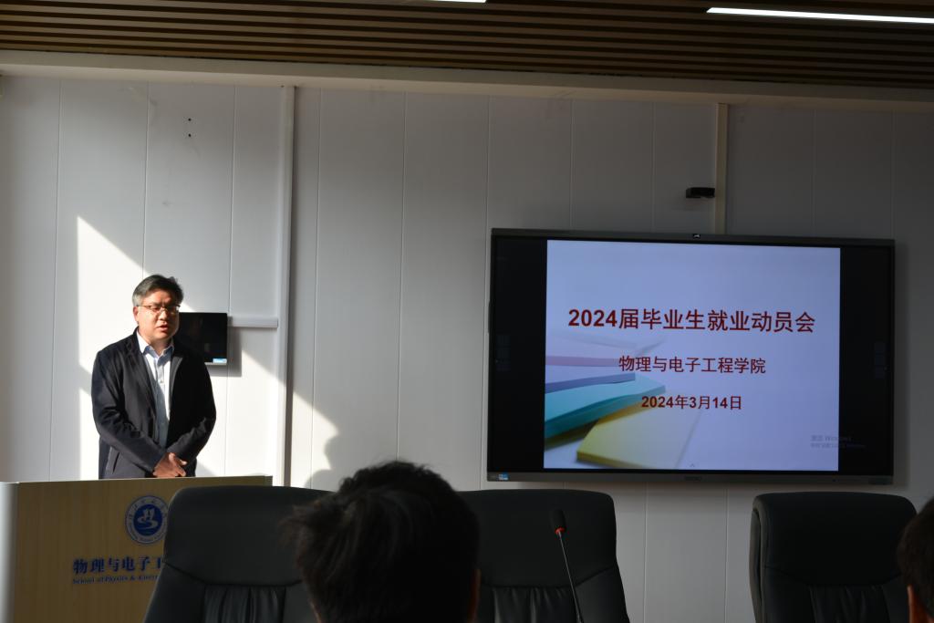 为进一步推进2024届毕业生就业工作,引导毕业生准确把握就业形势,明确职业发展方向,积极就业。3月14日上午,球友会在崇文楼B809召开2024年毕业生就业动员会,院分党委书记唐传球、副书记戴俊、学工办主任尹诗雅及2024届毕业生参加了会议。会议由戴俊主持。