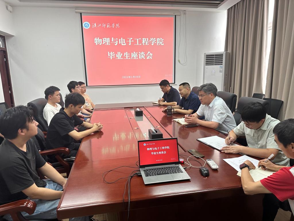 5月28日下午,球友会在崇文楼A503召开了2024届毕业生代表座谈会。经理王绍明、院分党委书记唐传球、副经理欧修龙、副书记戴俊、教学科研办公室主任陈智、2024届毕业生代表参加了会议。